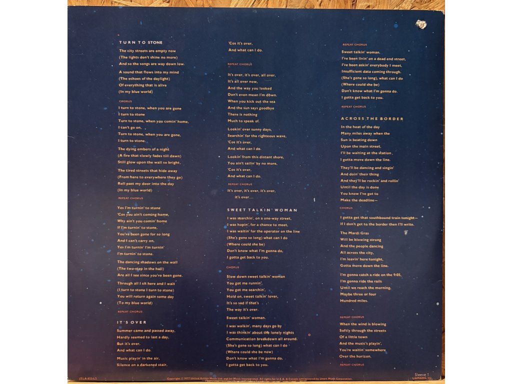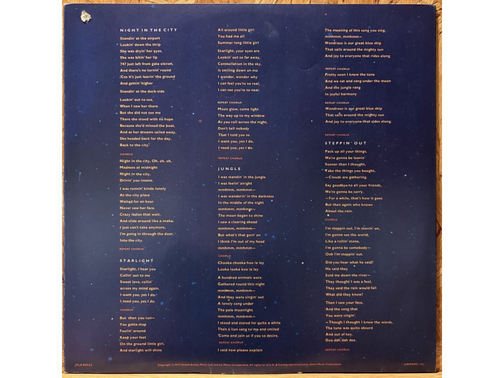 Fošny jsou v parádním stavu, legendární Prog Rock, Symphonic Rock, Classic Rock a pouze několik něžných vlásenek a jedna dvě jemné povrchovky. Paráda. Obal je pořádný otevírací tlusťoch, hezký a hranatý, na hranách několik ošoupaninek, v rožku US průstřel. Hezké košilky k tomu. Howgh!
