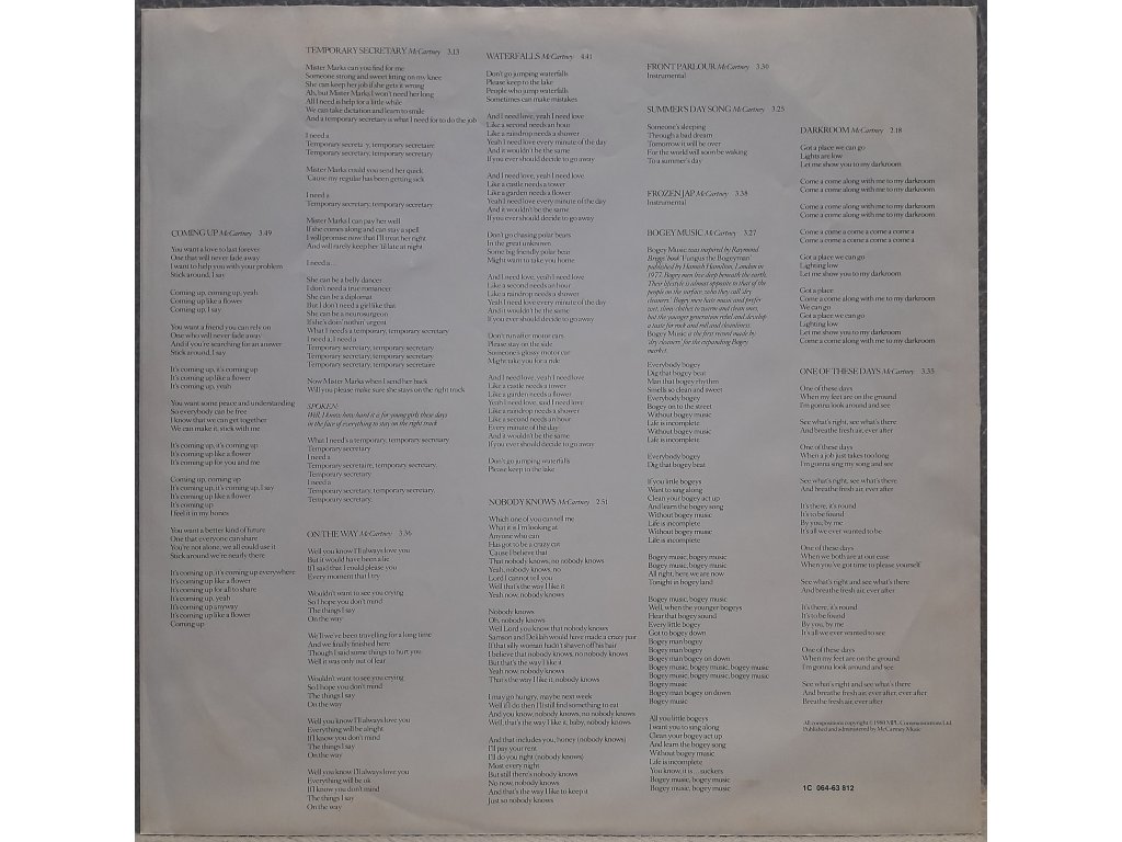 Fošna je v parádním stavu, drážky se točí v rytmu čísla 33, na nich skvělej Pól a pouze pár něžných vlásenek a do prdele nic jinýho, rušivýho. Paráda. Obal je krásný a hranatý, na hranách pár ošoupaninek. Rožky rohaté, vykované na rockové kovadlině, jeden s ohybem. Deska je v hezké košilce. Howgh!